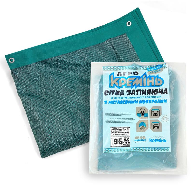 Сетка притеняющая "АГРО Кремень" 95 % 6м*10 м с люверсами Сетка для тени применяется для затенения теплиц, навесов и ограждений, по периметру сетки установлены металлические кольца (люверсы) на расстоянии 50 см друг от друга .Благодаря специальному переплетению, притеняющая сетка предотвращает сильный перегрев растений и в то же время, пропускает достаточное количество света. Затеняющая сетка представляет собой плотное, а главное прочное полотно с множеством ячеек. Сетка затеняющая Агро Кремень европейского качества полностью соответствует заявленному % притенения. Преимущества в выборе сетки для тени : Защита от прямых солнечных лучей Многократное применение, благодаря высокому качеству Защита от птиц, града, посторонний взглядов Легкий монтаж Небольшой вес Затеняющая сетка с кольцами ,используется, как навес для авто, как декоративный материал для обновления и строительства заборов. Затеняющая сетка на забор, станет незаменимой на дачном участке и частном секторе. Обратите внимание в нашем интернет магазине теневая сетка с люверсами через каждые 50 см, а не 100 см,как у многих других производителей!!!!!!!!!!!