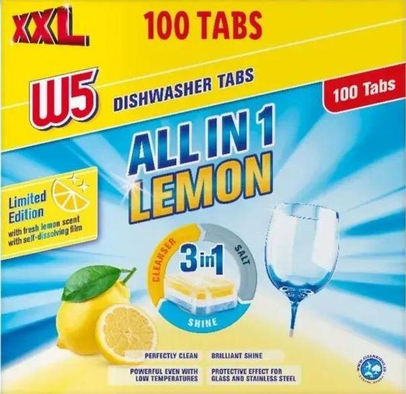 Таблетки для посудомоечных машин w5 all in 1 lemon 100 шт (цена за 1шт)