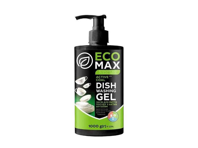 Засіб для миття посуду 1л з активованим вугіллям тм ecomax