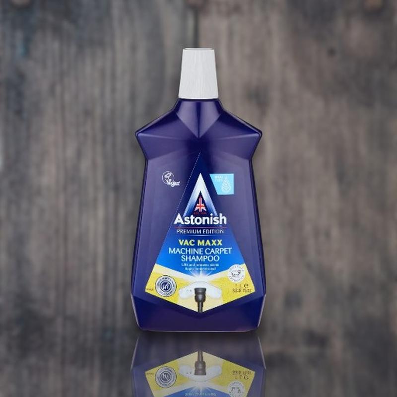 Концентрований шампунь для пилососів Astonish Vac Maxx – це потужний засіб для чищення та дезінфекції килимів, у тому числі вовняних та меблевої оббивки. Глибоко проникає у волокна, розчиняє та видаляє бруд, нейтралізує неприємні запахи. Шампунь підходить для використання у виробах усіх провідних виробників миючих пилососів. Економний концентрований засіб, зручний для обробки великих площ. Має низький рівень піноутворення. Дбайливо ставиться до поверхонь з вовни і має сертифікат WoolSafe. Перед використанням шампуню Astonish Vac Maxx необхідно перевірити стійкість кольору на непомітній ділянці. Попередньо видаліть грубі забруднення. Розведіть 1 частину шампуню в 10 частинах холодної води та дотримуйтесь інструкцій з використання пилососу. Після чищення зачекайте до повного висихання килима або оббивки та пропилісосьте ще раз у режимі сухого чищення. Не використовуйте разом з іншими миючими засобами.
