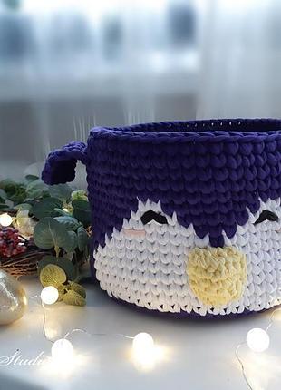 Скоро, скоро Новий рік! 😊а ще є свята і дні народження кожен день 😊 Кошики з т-пряжі стануть прикрасою для дитячої кімнати! Та бажаним подарунком для дитини! Ручна робота! Розмір кошиків: Пінгвінчик - 25х20см Також, створюю комплекти кошиків під замовлення! Можна вибрати відповідний вам розмір і колір! І візерунок або персонажа 😉