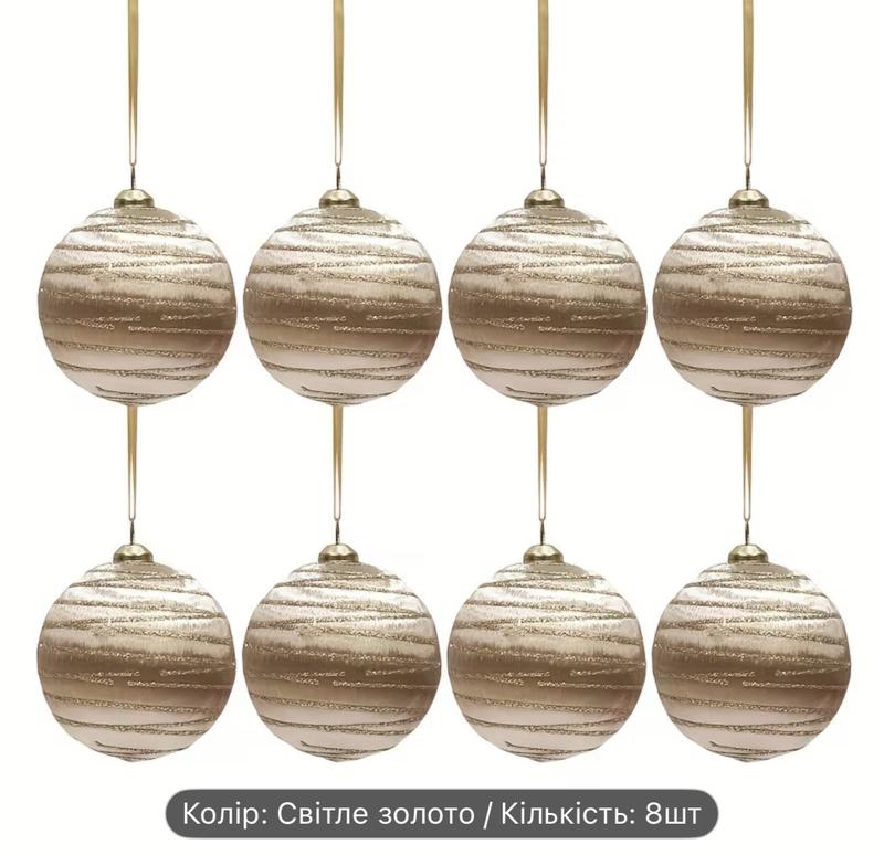 Атласні ялинкові прикраси з блискітками кольору шампань світле золото