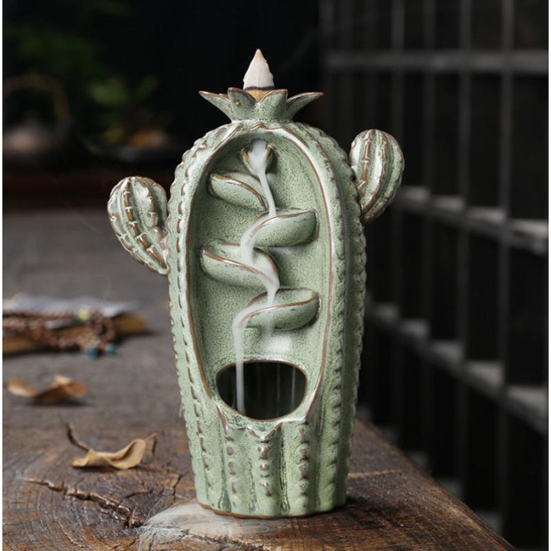 Керамічна підставка для пахощів backflow "кактус" салатовий. водоспад рідкий дим