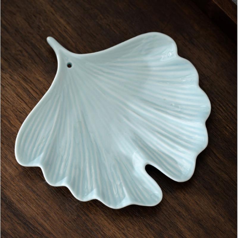 Подставка лист гинкго голубой, подставка под благовония, ароматические палочки керамическа...