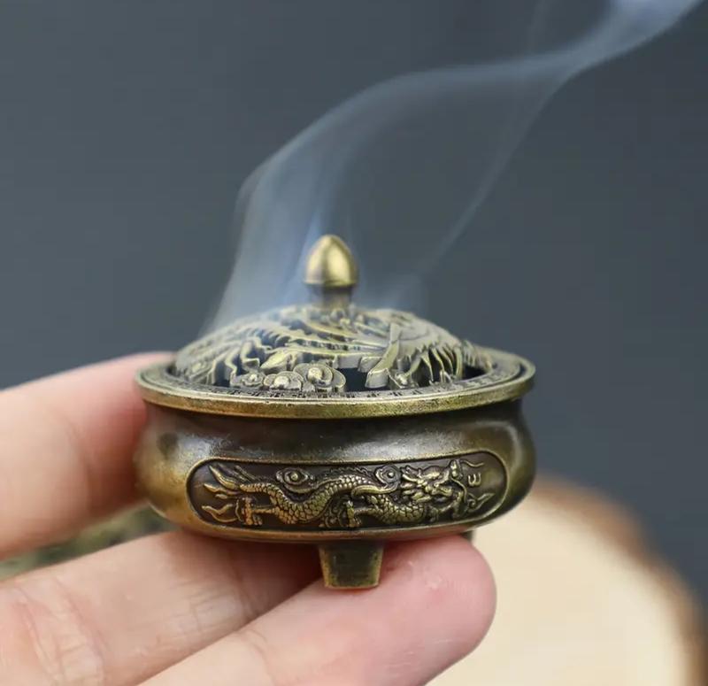 Елегантний латунний тримач для пахощів, мініатюрний рельєф дракона та фенікса – ідеальний аксесуар для ароматерапії для дому та декору спальні. Просто помістіть на нього трави, ароматичний конус або паличку сандала, і він відправлятиме чудовий аромат, створюватиме потрібну вам атмосферу. Маленький розмір, легко носити з собою. Креативний декор для дому. Матеріал: цинковий сплав Розмір (верхній діаметр x висота): 3,4x4x3cm