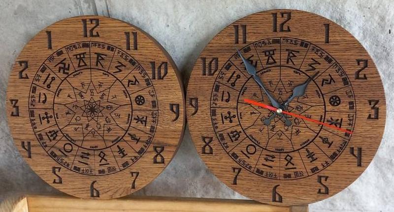 Годинник з натурального дерева. Діаметр 30 см. Матеріал: дуб. Покриття - масло с воском. Годинники у наявності. Конкретний годинник можна (і, навіть, потрібно) вибрати. Фото для прикладу, точне повторення структури дерева та кольору неможливе. "Суть Кола Сварожого у тому, що воно покликане відображати календарну обрядовість древніх слов’ян. Сучасною мовою – це зодіакальний круг. Сварог – це чоловіче втілення Всесвіту, небесний коваль, що викував світ, створив перших людей і заселив Землю живими істотами. Наші предки ще за часів Трипільської культури вірили в те, що все в світі рухається по колу і такий рух є безкінечним."