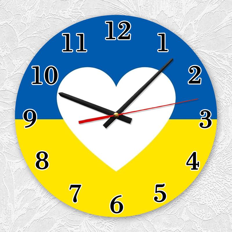 Настінний годинник з патріотичним дизайном - чудовий елемент декору для кімнати, офісу, інших приміщень. Гарний подарунок на будь-який випадок життя. Основою годинника є прозорый глянцевий акрил товщиною 3 мм, діаметром 29 см. Принт нанесений екологічним фарбами методом УФ друку. Фарби стійкі до вицвітання. Частина циферблату прозора. Тихохідний годинниковий механізм (джерело живлення - 1 пальчикова батарейка типу АА, входить у комплект). Також виготовляємо годинники на замовлення! Надсилайте ваше фото, малюнок, свій дизайн або логотип. Підготуємо макет безкоштовно. Максимально короткі терміни виконання замовлення.