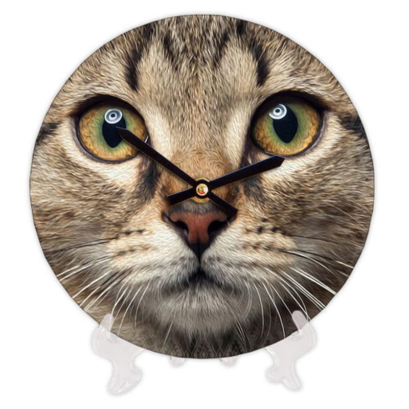 Настінний годинник круглий «кіт» дерев'яний з принтом 18 см