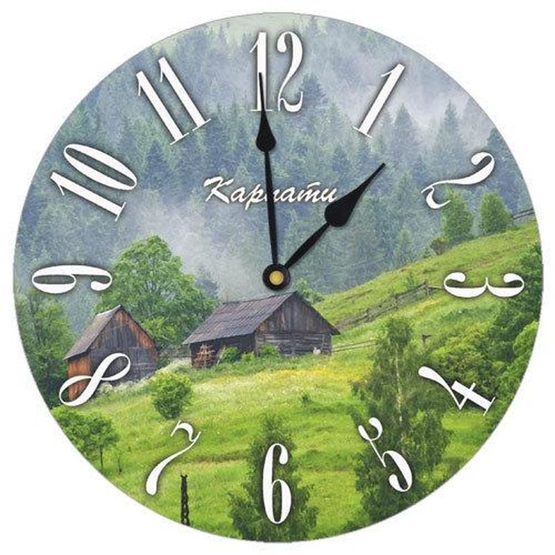 Годинник настінний круглий «карпати» дерев'яний з принтом 36 см