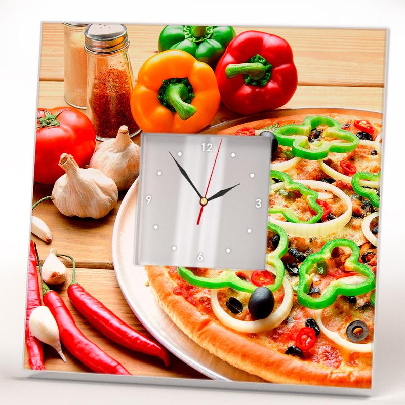 Годинник із дзеркальним циферблатом "красива піца" на кухню в бар кафе ресторан