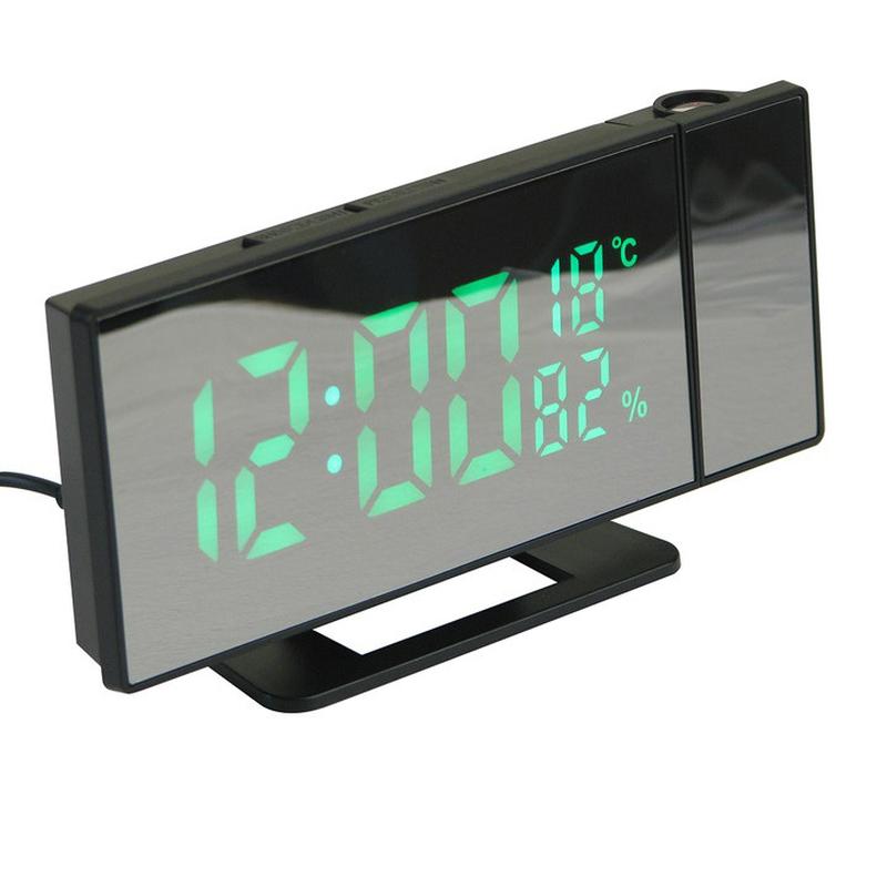 - Зеркальные часы - Будильник - Термометр - Дата - Влажность - Цвет цифр: зеленый - Цвет цифр из проектора: красный - Цвет корпуса: черный - Размеры часов: 18 см * 9 см * 5 см - Поворот проектора от начального положения на угол -90 град до +90 град - Напряжения питания: 5В (usb) - Батарейка для сохранения настроек: тип 2032 - 1 шт - От батареек часы не работают, экран не светится - Длина провода шнура usb: 95 см - Шнур usb входит в комплект - Материал корпуса: пластик Особенности: - Светодиодный дисплей 4 бита для четкого отображения. - Отображение времени в формате 12/24 часа с часами и минутами. - Функция даты, предоставляющая информацию о дне, месяце и годе (в диапазоне с 2000 по 2099 год). - Будильник с возможностью установки ежедневного оповещения и отсрочки сигнала. - Измерение и отображение температуры в градусах °F/°C в диапазоне от -10°C до 50°C (14°F-122°F). - Возможность выбора режима отображения температуры °F/°C с помощью удержания кнопки MODE. - Режим энергосбережения: при напряжении 4,5 В экран выключается через 15 секунд, а при 5,0 В от USB экран всегда включен. - Регулировка яркости цифрового отображения с четырьмя режимами: высокой, средней, низкой и выключено. - Автоматическое переключение в режим низкой освещенности с 18:00 до 5:59, с возможностью установки автоматического интервала низкой освещенности. - Функция ЖК-проекции времени с тремя режимами: высокий, низкий и выключено, регулируемая кнопкой PROJECT. - Питание от внешнего источника 5 В постоянного тока, с поддержкой литиевой батареи 3,0 В для сохранения настроек при отключении внешнего питания. - Звуковая обратная связь при нажатии всех клавиш. Комплектация: - Зеркальные настольные часы - Зарядный провод usb - Батарейка CR2032 - Инструкция - Упаковочная коробка