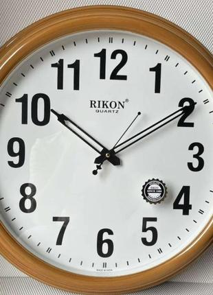 Тип годинника Настінний Тип механізму Кварцовий Індикація часу Стрілкова Форма Кругл Механізм із кроковим ходом стрілок. Матеріал: пластик. Розміри: 460 x 460 x 60 мм. Характеристики: Мінеральне скло, корпус полімер. Надійний кварцовий настінний годинник круглої форми, яким масивний корпус золотисто-рожевого кольору та бежевий циферблат надають вигляду елегантного сучасного стилю. Ідеально впишуться в інтер'єр вітальні кімнати, спальні та офісного приміщення. Оптимальний розмір годинника та циферблата, а також об'ємність цифр і розмір шкали, дадуть змогу вам легко зчитувати час із будь-якого ракурсу. Вони забезпечені точним механізмом пересування секундної стрілки, який ледь чути в тихій кімнаті. Стрілки виготовлені з металу. Скло годинника має високу пропускну здатність світла та за ідеальної чистоти створює враження своєї відсутності. Під час виготовлення корпусу використовується міцний екологічний пластик. Кварцовий механізм працює від однієї пальчикової батарейки типу АА (до комплекту входить). Цей годинник як справжній витвір мистецтва. А великий корпус діаметром 46 см. займе особливе місце в інтер'єрі та з легкістю надасть вашій кімнаті особливий шарм.