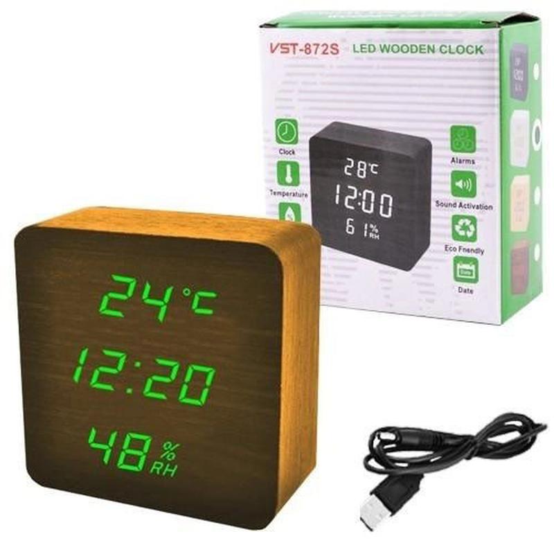 Годинник настільний VST-872-4 із зеленим підсвічуванням, має яскраві цифри, великий шрифт і високу функціональність. Дерев'яний електронний LED-годинник вдало впишуться практично в будь-який інтер'єр, ідеально гармонуючи з дерев'яними меблями. Виконані у незвичайному дизайні дерев'яного бруска. Поки пристрій не увімкнено, відразу й не подумаєш, що це годинник. Але все змінюється під час увімкнення цифрового табло. Цифри просвічують крізь стінку годинника. Це дуже презентабельно. Працюють за допомогою 4 батарей ААА або через USB кабель. Характеристики: - Живлення: 4 батареї ААА/ через USB шнур; - Колір підсвічування: зелений; - Розміри: 112 х 55 х 125 мм; - Календар, будильник, термометр. - Функція звукової активації; - Діапазон вимірюваної температури: 0°С~50° C. Комплектація: - Годинник; - USB шнур. НАШ ТОВАР покликаний зробити ваш дім функціональним та стильними,ми пропонуємо великий вибір для будь-якого бюджету НАШ СЕРВІС відрізняється особливою увагою до деталей: від допомоги у виборі до підтримки після покупки НАШ МАГАЗИН пропонує не тільки широкий асортимент, але й постійні новинки,що відповідають сучасним тенденціям