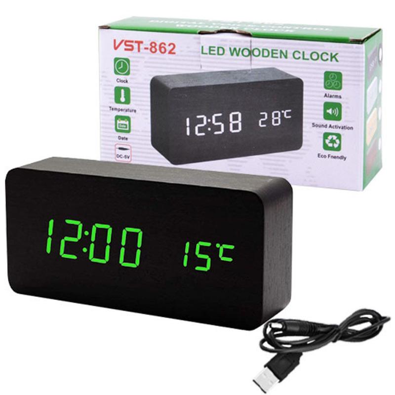 Электронные часы vst-862-4, с датчиком температуры, будильник, питание от usb. цвет: черны...