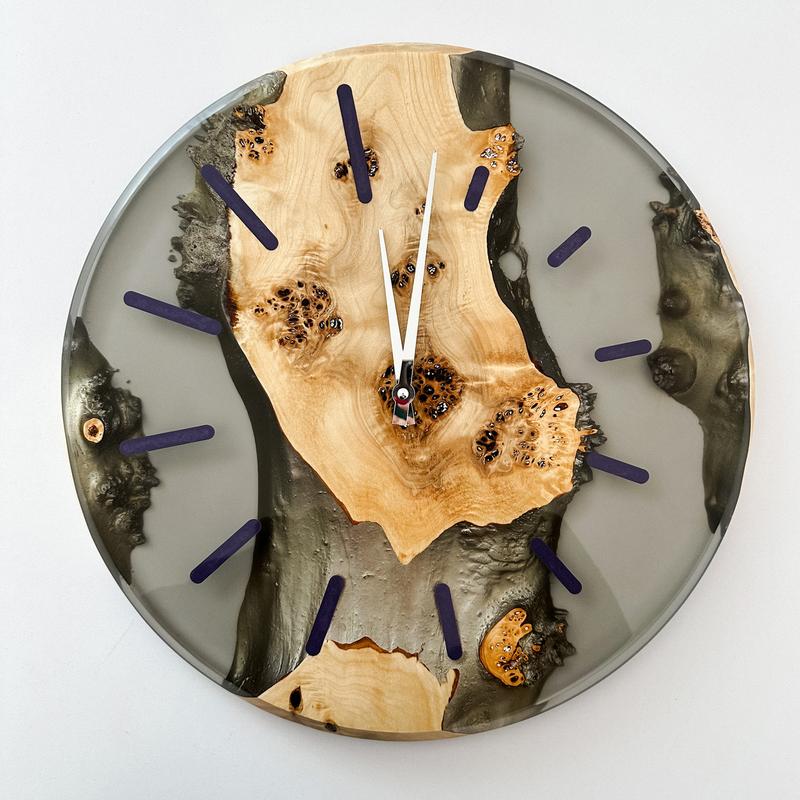 Настенные часы из серии EPOXY&WOOD - это воплощение природного совершенства дерева в сочетании с красотой эпоксидной смолы, в которую вложена частичка души мастера и его талант. Именно эти часы придадут особого шарма вашему дому, а также станут прекрасным подарком. Каждое изделие делается вручную и все узоры уникальны. Поэтому вы можете быть уверены, что ваших часов не будет больше ни у кого. Под ваш интерьер мы с радостью подберем породу дерева, удачную цветовую гамму и нужный размер. Срок изготовления - 14 дней. По вашему желанию упаковываем в подарочную деревянную коробку (+850 грн). Есть большой выбор часов в наличии (отправка в день заказа). Возможна международная доставка. Все детали уточняйте у менеджера. Дайте волю фантазии, и мы воплотим все ваши мечты в жизнь. - Порода дерева на выбор - тополь либо орех - Можно заказать во всех цветах и добавить гравировку - Размеры - до 150 см в диаметре - Цифры римские/арабские - Золотые/серебряные/черные стрелки и деления (на выбор) - Высокоточный бесшумный механизм с плавным ходом - Есть петля на механизме для подвешивания Интересно, как будут создаваться ваши часы? Смотрите обзор: