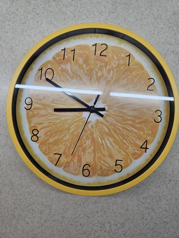 Годинник в наявності для дитячої кімнати,або кухні Діаметр 30см ширина збоку 4см При роботі майже не чутно стрілок стрілок. Колір насичений оранжевий дуже красивий