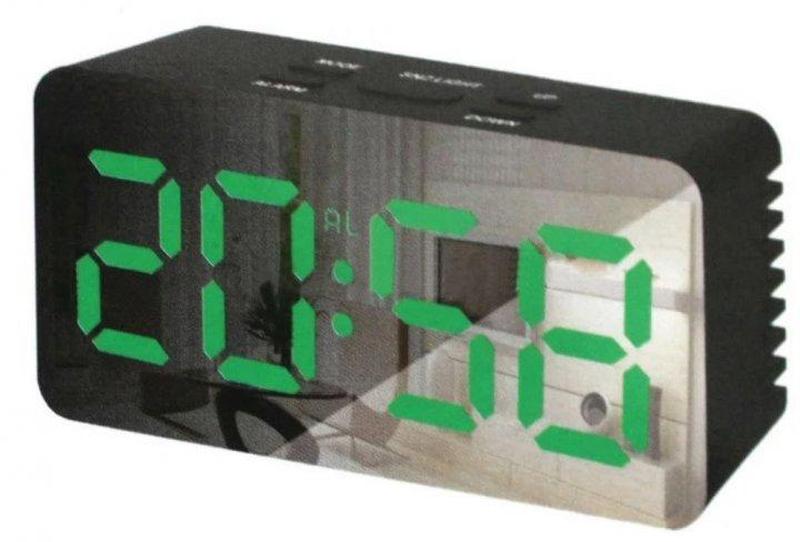 Часы настольные DS-3658L с яркой зеленой подсветкой электронного циферблата украсят своим стильным дизайном вашу комнату или рабочий офис. Форма часов - классическая, прямоугольная. Светодиоды зеленого цвета ярко освещают цифры на дисплее. Видимость светодиодов одинаково яркая в любое время суток. Кнопки управления часами расположены на верхней панели, это обеспечивает комфортность эксплуатации прибора. Существует функция повторного срабатывания будильника, устройство ставится на паузу. Работают часы от сети. Но также предусмотрена установка батареек, которые обеспечивают сохранение настроек времени при перебоях с основным электропитанием. В дополнение к основным функциям предусмотрено наличие термометра для измерения температурных показателей в помещении. Характеристики: - Материал корпуса: пластик - Цвет подсветки: зеленый - Зеркальная поверхность - Питание: сеть - Есть слот для батареек, для сохранения настроек времени при перебоях с основным электропитанием - Функция повторного срабатывания будильника - Термометр для измерения температуры в помещении - Кнопки управления на верхней панели - Часовой формат: 12/24 часа - Несколько режимов индикации дисплея: - показывает время (часы + минуты) с автоматическим переключением во второй режим через 10 секунд; - показывает дату (месяц + день) с автоматическим переключением в третий режим через 10 секунд; - показывает температуру с автоматическим переключением в первый режим через 10 секунд - Автоматическое уменьшение яркости свечения в вечернее и ночное время (18:00 - 7:00) - Размеры: 10.4 х 3.5 х 5.2 см Комплектация: - Часы настольные - USB кабель питания