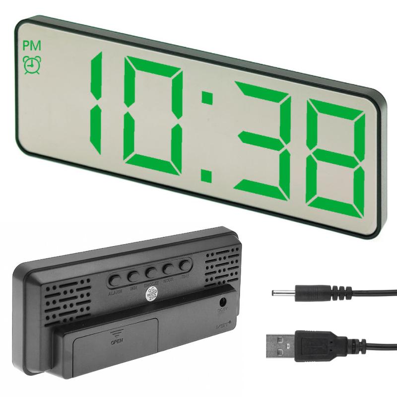 Електронний годинник з дзеркальним дисплеєм, від usb + термометр, vst-898-4, зелений