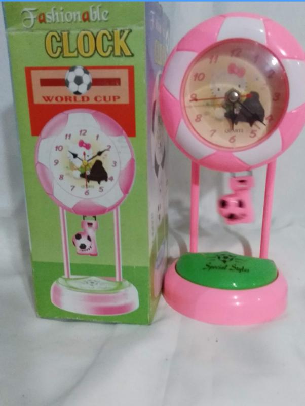 Дитячі кварцові годинники з маятником і нічником( зелена клавіша внизу ). Годинник працює від однієї пальчикової батарейки. Нічник працює від трьох пальчикових батарейках (фото). У цій моделі будильник не передбачено. Батарейки в комплект не входять. Подарункова упаковка. Розміри : ширина 10 см,висота 24 див.