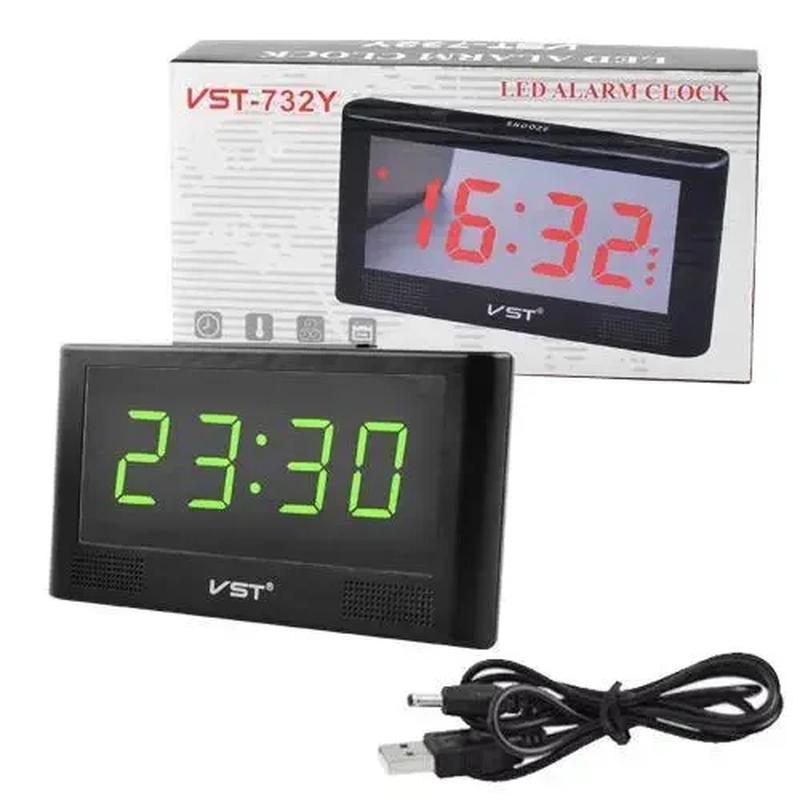 Годинник мережеві з будильником датчиком температури і датою vst-732y-4 черныйзеленые