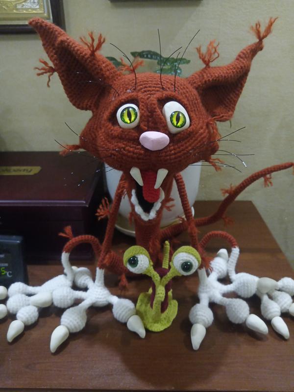каркасна іграшка, чудове доповнення до інтер'єру. в середині проволочний каркас, очі,зуби, ніс та кігті з полімерної глини. можливо поставити або покласти, як вам заманеться.