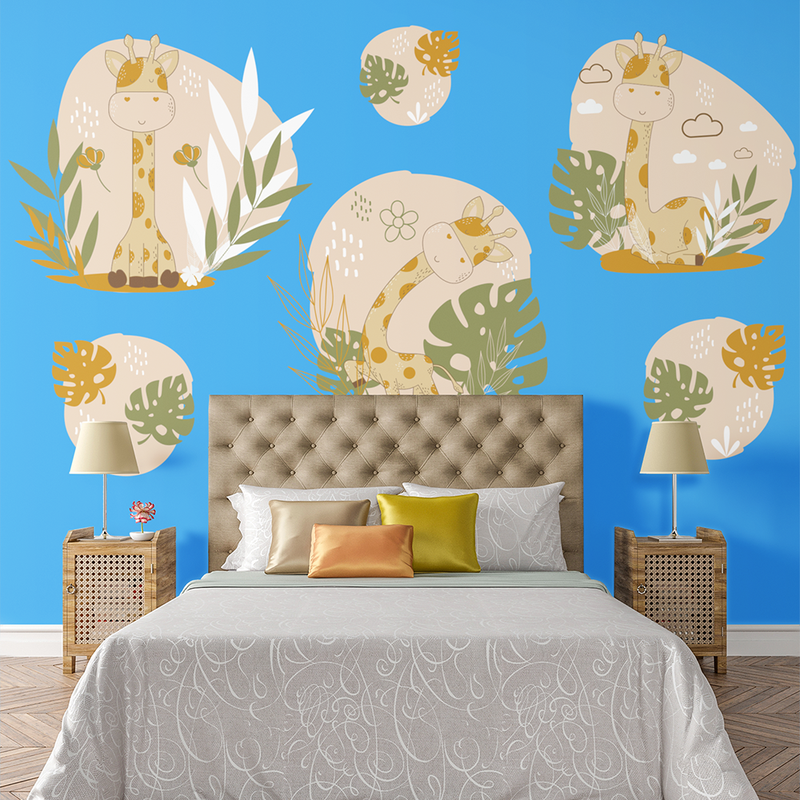 Вінілова інтер'єрна наклейка кольорова декор на стіну, шпалери та інші поверхні "жираф у л...
