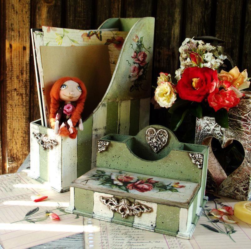 А у мене для Вас ось такий чудовий набір, вінтажний органайзер і журнальница-тетрадница. Прикрасить будь-який робочий стіл.