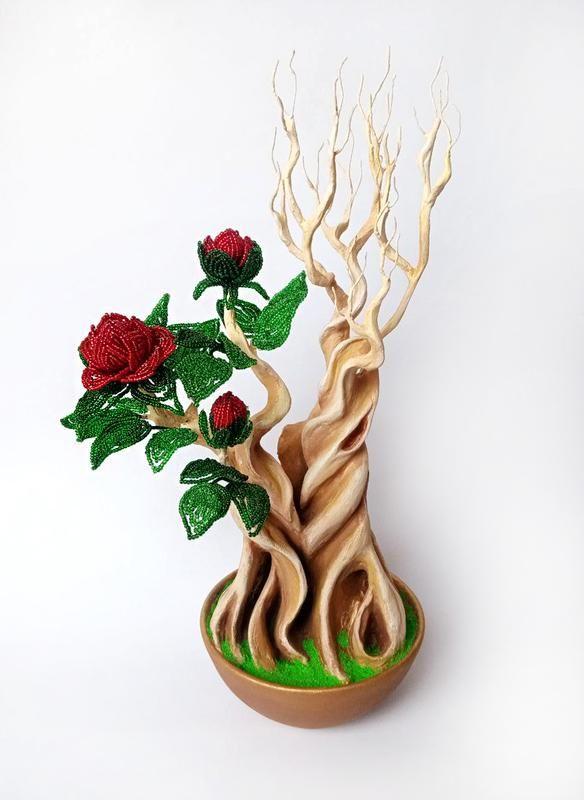 Декоративне дерево з червоними квітками, з гіпсу та бісеру