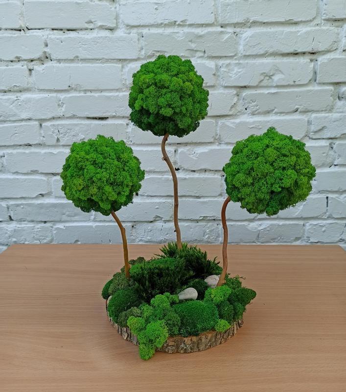 Композиція зі стабілізованих дерев, дерева з моху, декор з моху