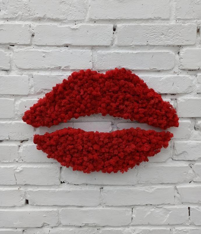 Декор на стіну в салон чи студію краси - червоні губи, губи з червоного мохом.