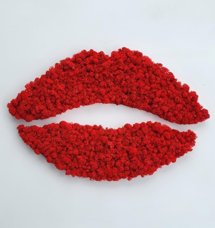 Декор на стену в салон или студию красоты – красные губы, губы из красного мха. Оригинальный и яркий, объемный декор на стену из мха. А также такие губы одновременно выступают как логотип (лого) на стену салона красоты. Основой таких губ является заготовка из фанеры. С обратной стороны есть крепление (пропонуем на гвозди вешать). Или же по Вашему желанию на клей. Отмечаем, что декор из мха не нуждается в уходе, его не нужно поливать и желательно, чтобы расположен он был не на солнечной стене (чтобы весь дент не попадали солнечные лучи). На фото есть размер губ: длина 40 см - 1100 грн 50 см - 1660 грн 60 см - 2200 грн На фото губы 50 см длиной Высота их составляет 35 см Конечно, мы с удовольствием выполняем такой декор другого размера, поэтому все предложения Вы можете предоставлять Стоимость просчитывается в соответствии с размером