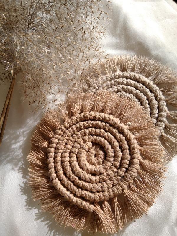 А ви помічали як маленькі деталі в інтер'єрі створюють затишну атмосферу, в якій хочеться залишатися✨ Підставочки з 100% натуральної бавовни, в кольорі какао та карамель, діаметр 14см Ідеально виглядають під вазою квітів, чашкою кави, баночкою печива і навіть під горщиком для рослин🧡 Створюйте затишок у домі.