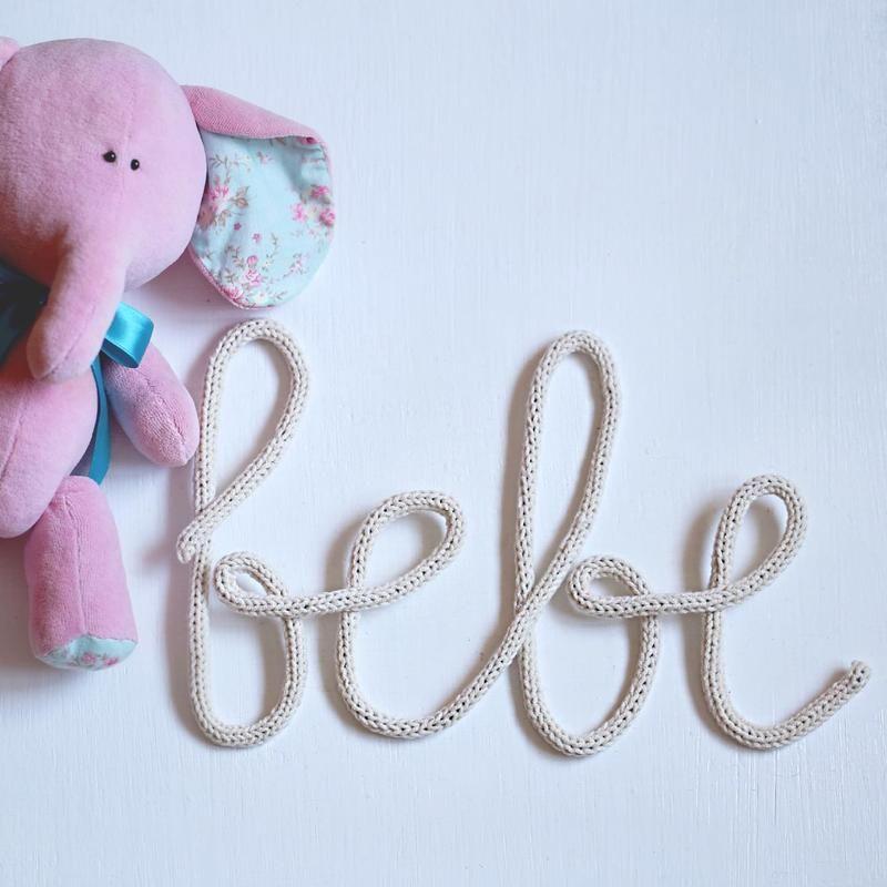 Матеріал: бавовняна пряжа, гнучка основа в середіні. Розміри слова: 17-18 см велика літера; 9-10 см наступні літери Кольорова гамма за побажанням Вартість розраховується в залежності від кількості літер у слові-вартість за слово з 4х букв-400 грн Товар виготовляється на замовлення