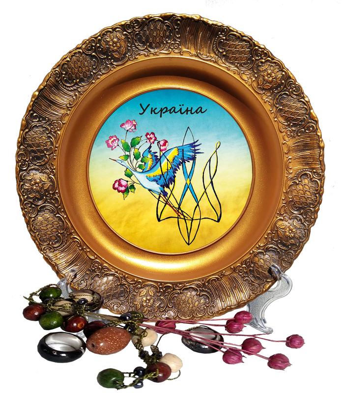 Декоративная патриотическая тарелка тризуб аист тарелка с украинской символикой