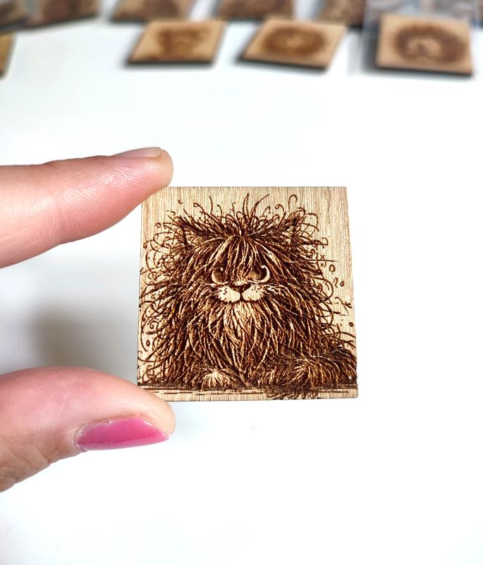 Магніт із дерева пухнастий кіт handmade 👉 4x4см