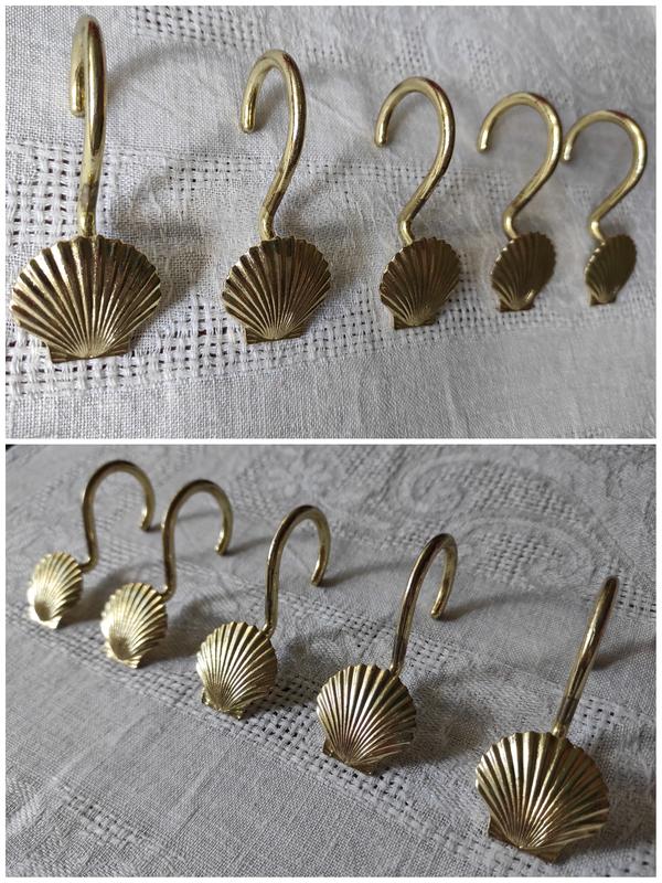 Цікаві гачки для шторки у формі черепашок (5 шт.) металеві. вінтаж. розміри на фото. б/у в гарному стані. є на фарбі незначні зміни. але, загалом, все красиво.