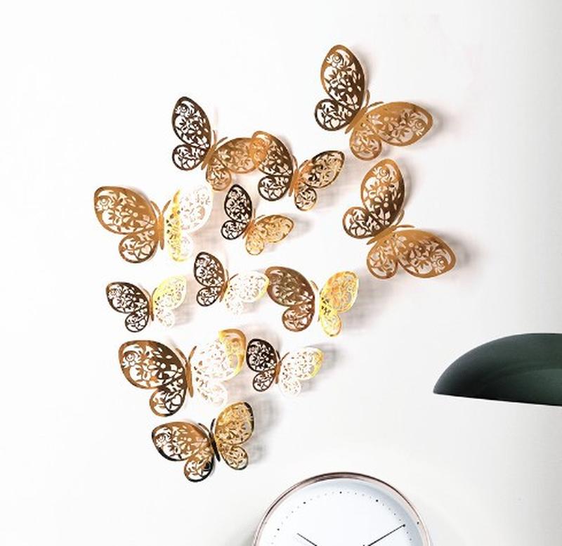 Декоративні метелики золотисті - 12шт. в наборі, фольга
