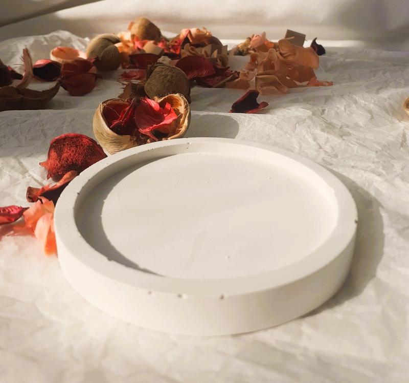 Элегантная гипсовая подставка диаметром 8 см - стильный и практичный аксессуар для дома. Идеально подходит для хранения украшений, свечей, аромопалочек или других мелочей.