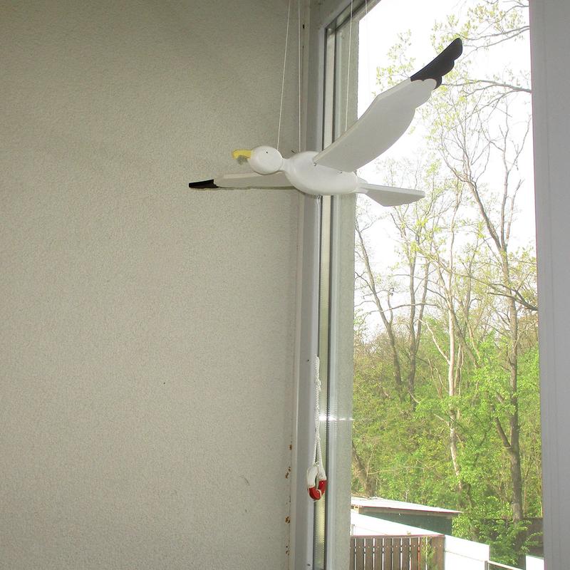 Креативный декоративный подвесной декор для детской комнаты, балкона, веранды, садовой беседки, летней площадки и т.д. Выполнен в виде парящей в воздухе чайки и маше крыльями, если потянуть за подвеску в виде корабельного спасательного круга. Простая форма и натуральная текстура придаст интерьеру успокаивающую атмосферу спокойствия и медитативности. Изготовлена вручную. Габариты: размах крыльев - 73 см, длина - 36 см. Материал - дерево и фанера. Поставляется в разобранном состоянии. Требует сборки. Видео на Youtube: ******************************