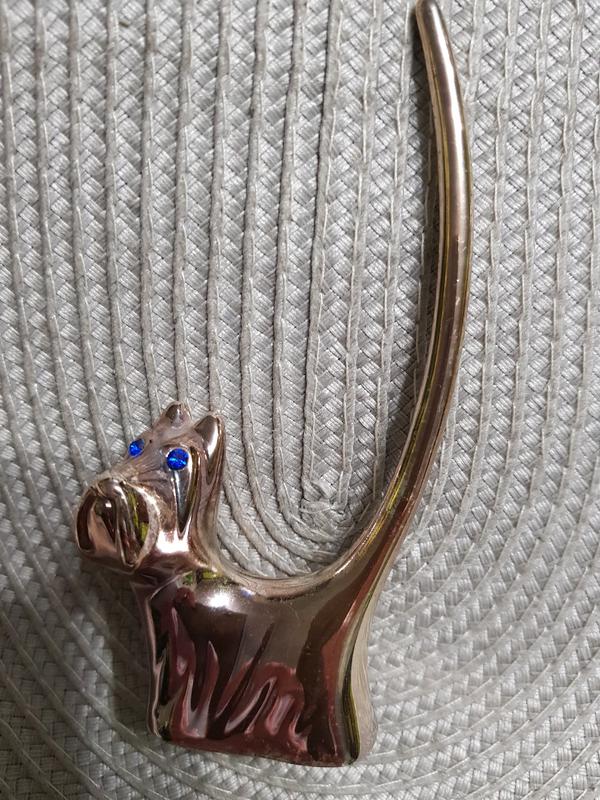 Продам нову підставку для зберігання кілець у вигляді собачки з довгим хвостом, який і служить тримачем для зберігання кілець.Матеріал-метал,низ-чорна оксамитова тканина, очі-сині склянні стрази.Підставка нова,не користувалися. Висота-12 см, ширина-5.5-6 см.
