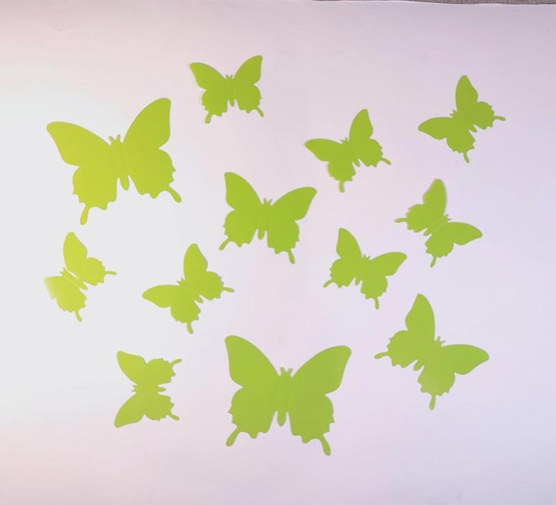 Наклейки на стіну 12 шт 3d метеликів салатові б130