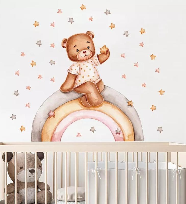 Вінілові наклейки на стіну ведмедик у зірках на веселці (лист 40 х 60 см) б394-73