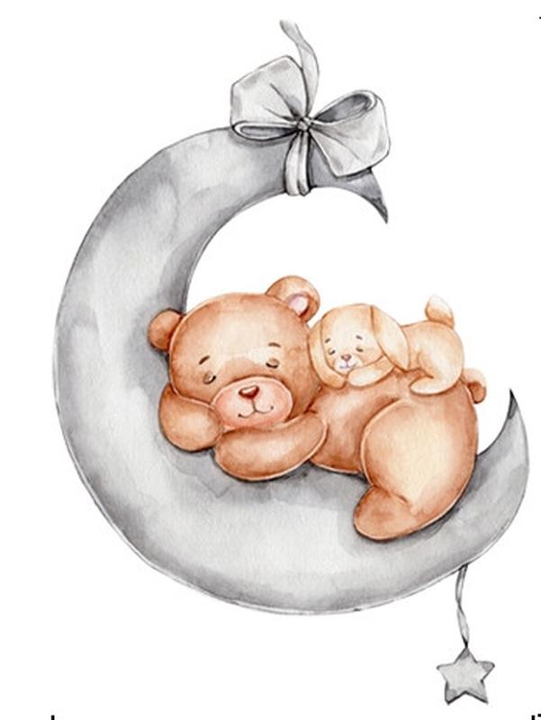 Яскраві наклейки прикрасять будь-яке приміщення, де є діти. Улюблені персонажі мультфільмів піднімуть настрій і створять місце розташування в дитячій кімнаті, дитячому садку, у лікаря і не тільки. Клеїти легко та весело! Гарний подарунок на День народження! Ви отримаєте наклейки на аркуші розміром 30 см*80 см, де компактно наклеєні всі елементи Приблизний розмір композиції після наклеювання становить 65 см *45 см Вінілові наклейки на стіну, у дитячу "ведмедик із зайчиком сплять на місяці"