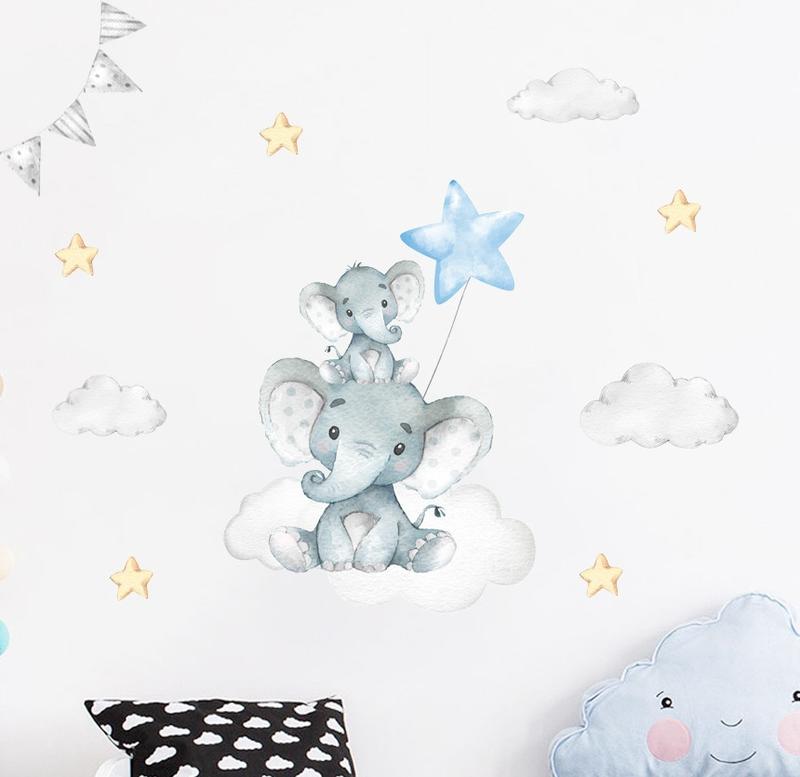 Наклейки в дитячий садок слоненятко із кулькою сидить на таткові (лист 30 х 65 см) б23-6