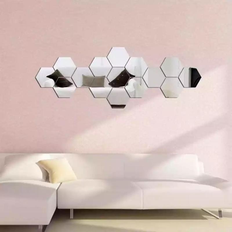 Уценка! зеркальные наклейки соты шестиугольные 17см*20см*10см пластиковые, 12шт набор