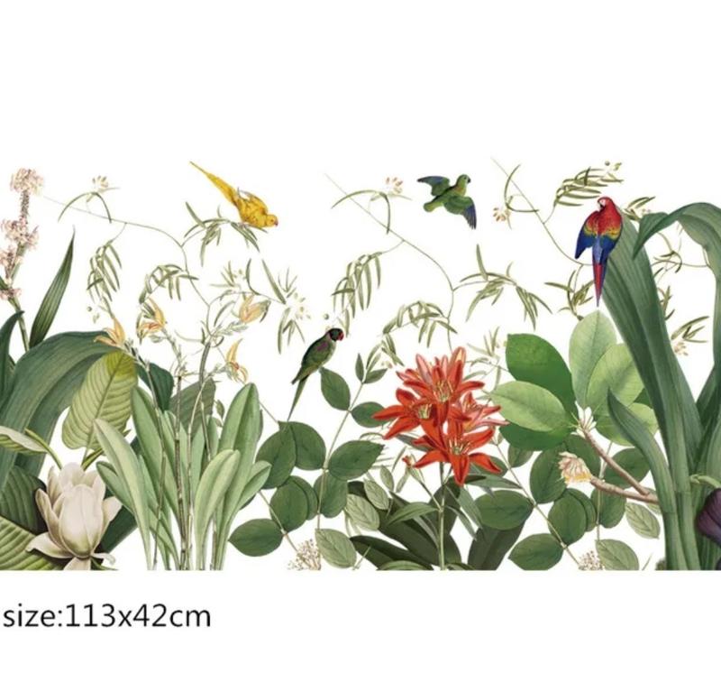 Вінілова наклейка на стіну квіти рослини папуги (лист 60 х 90 см) б450