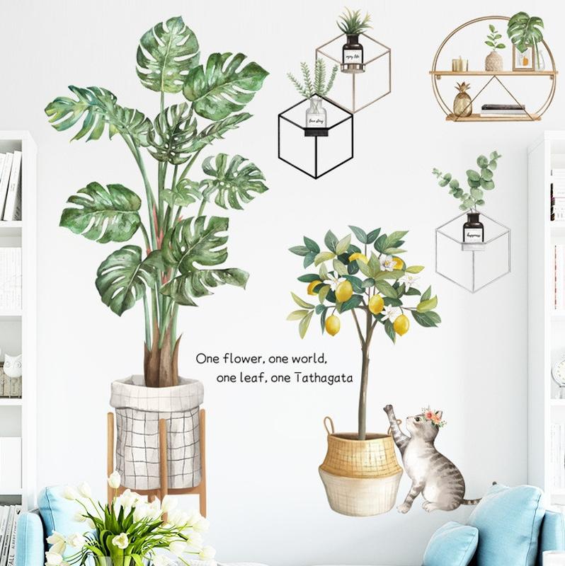Вінілові наклейки фікус лимон вазони кіт квіти (лист 60 х 90 см ) б67-5