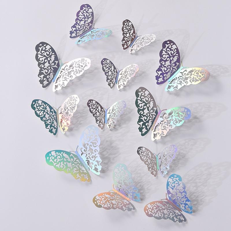 3d дзеркальні наклейки метелика срібло 12 шт jj305-a