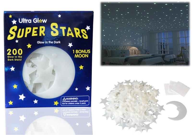 Набір фосфорних наклейок super star 200 зірок та місяць, що світяться у темряві 3d стікери...