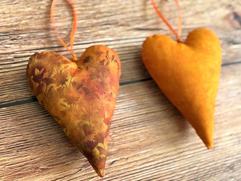 Декоративні серця в осінніх кольорах, виготовлені з американської бавовни, наповнення - холофайбер. Серця доповнять ваш подарунок, стануть окрасою кімнати, кафе чи магазину. Ціна 165 грн вказана за 2 серця: з принтом листя та оранжевого без принту. Розмір серця: 13х9.5х3 см